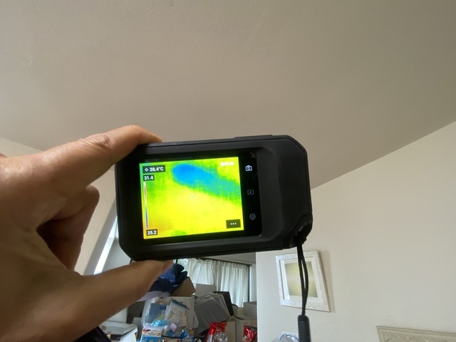 赤外線カメラなので青い部分が雨漏り箇所です。